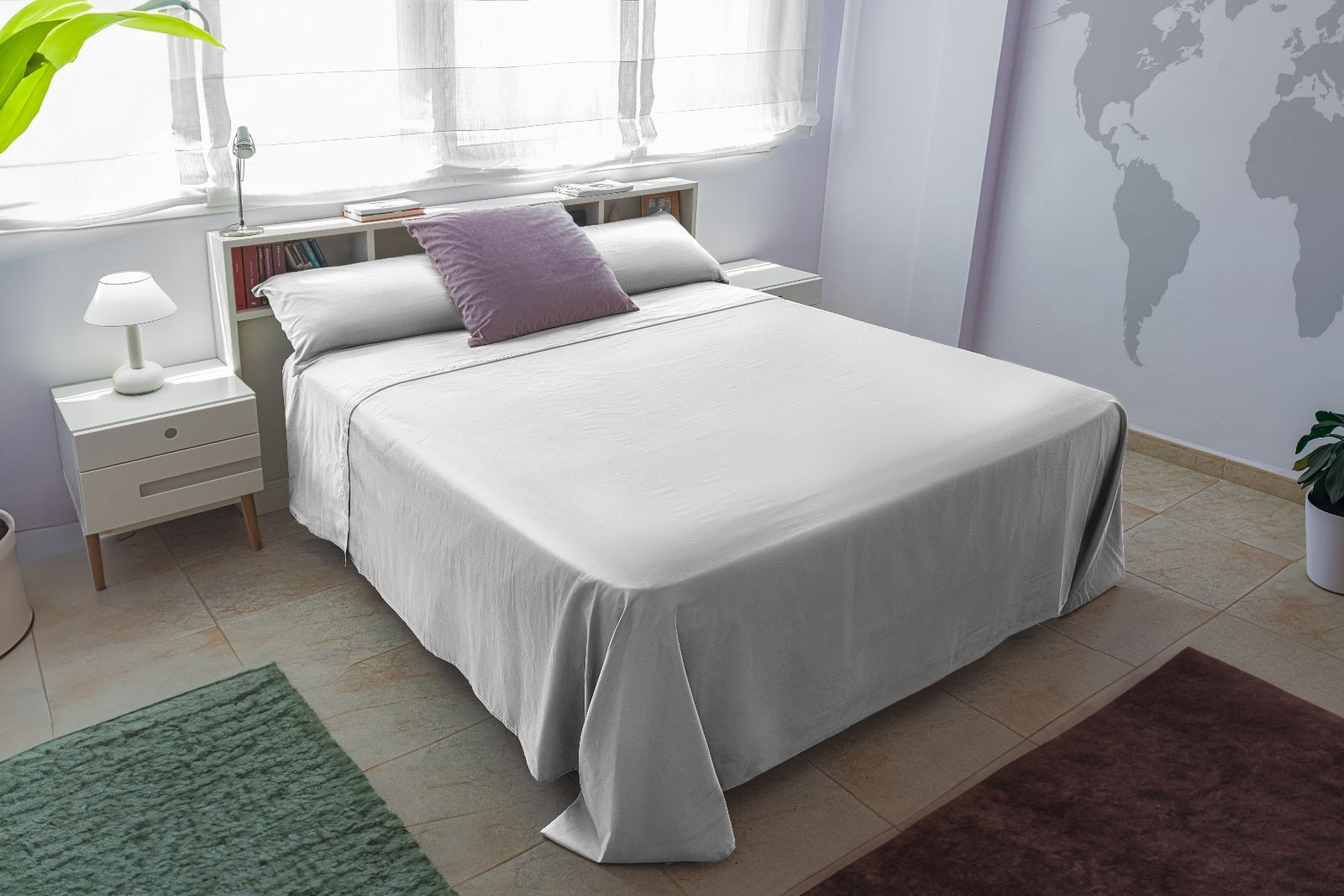 Incluye 1 sábana encimera, 2 funda de almohadas y 1 sábana bajera.