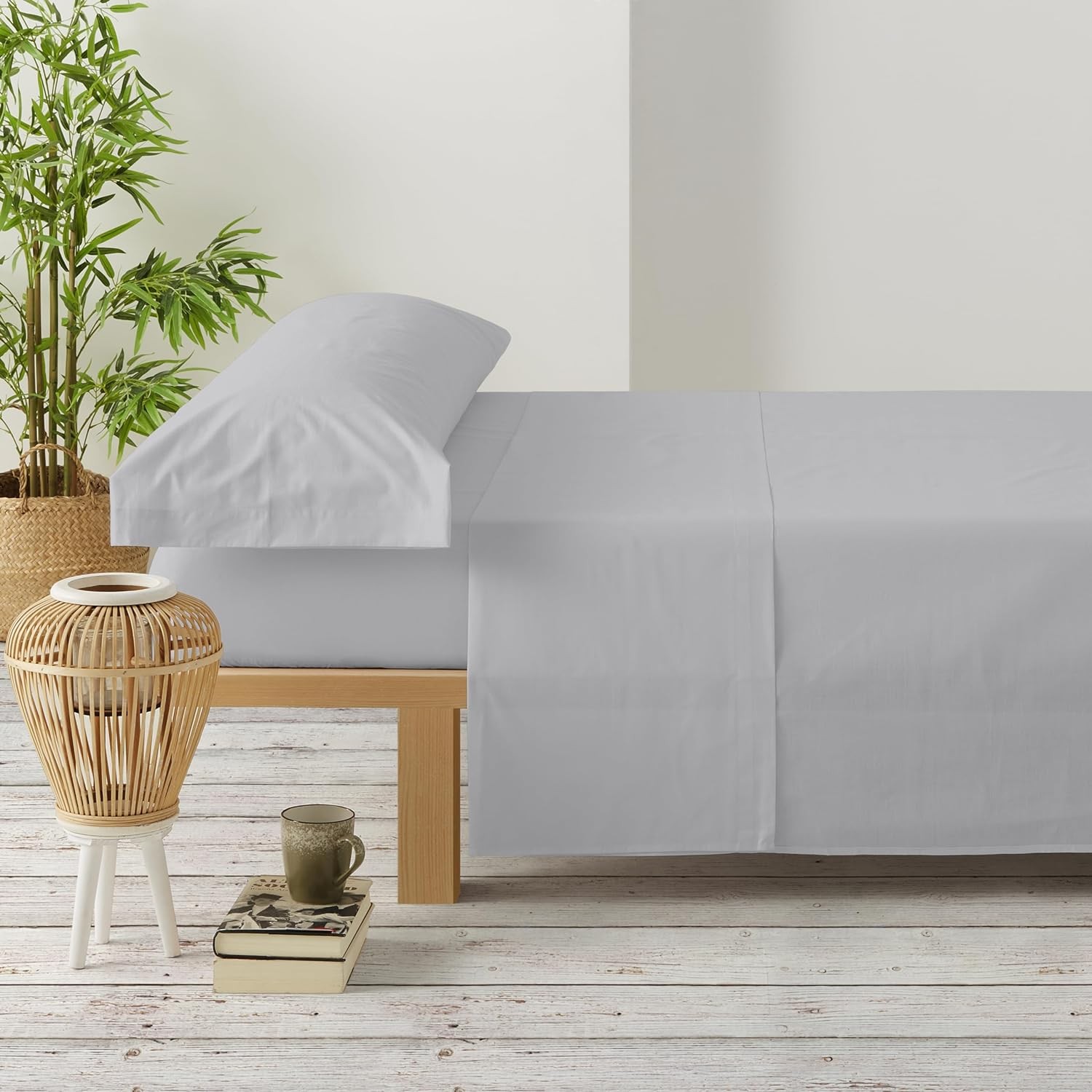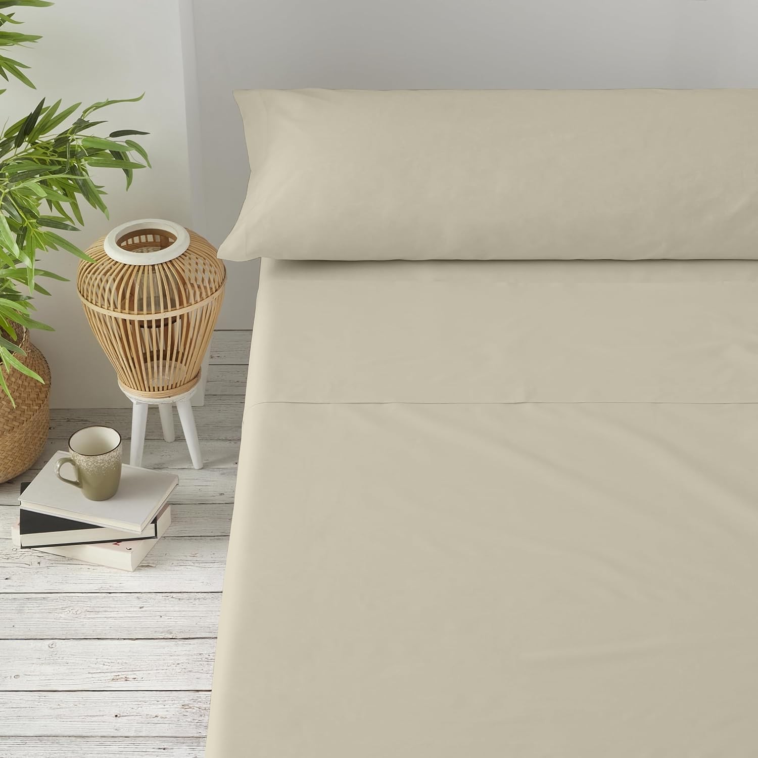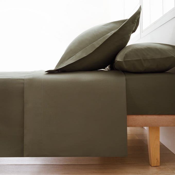 Juego de sábanas confeccionado en España, con un diseño liso disponible en varios colores.